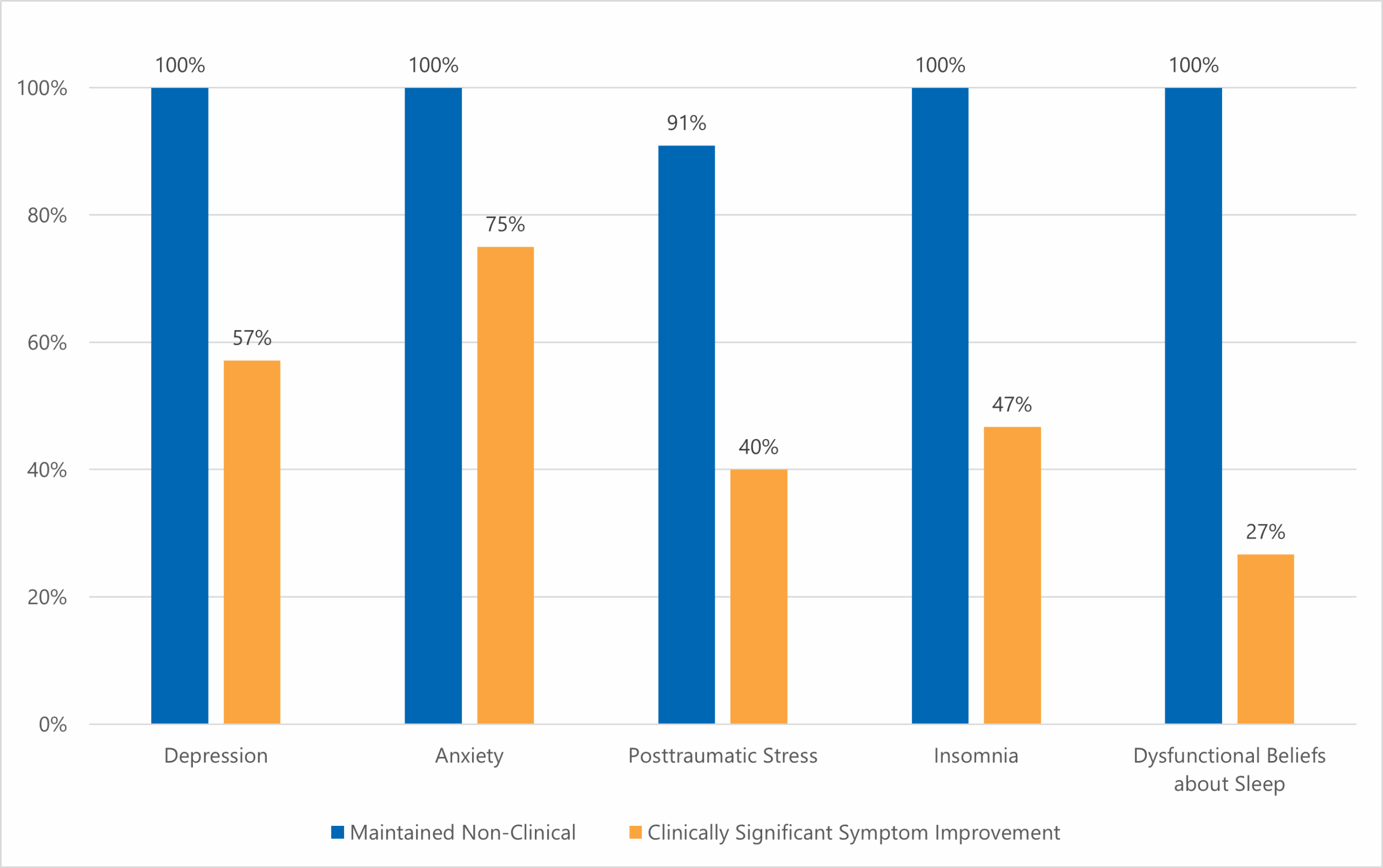 Note: Clinical outcomes are currently only available for the English version of the therapist-guided PSP Sleep Course. Data from the French version of the course will be included later this year.