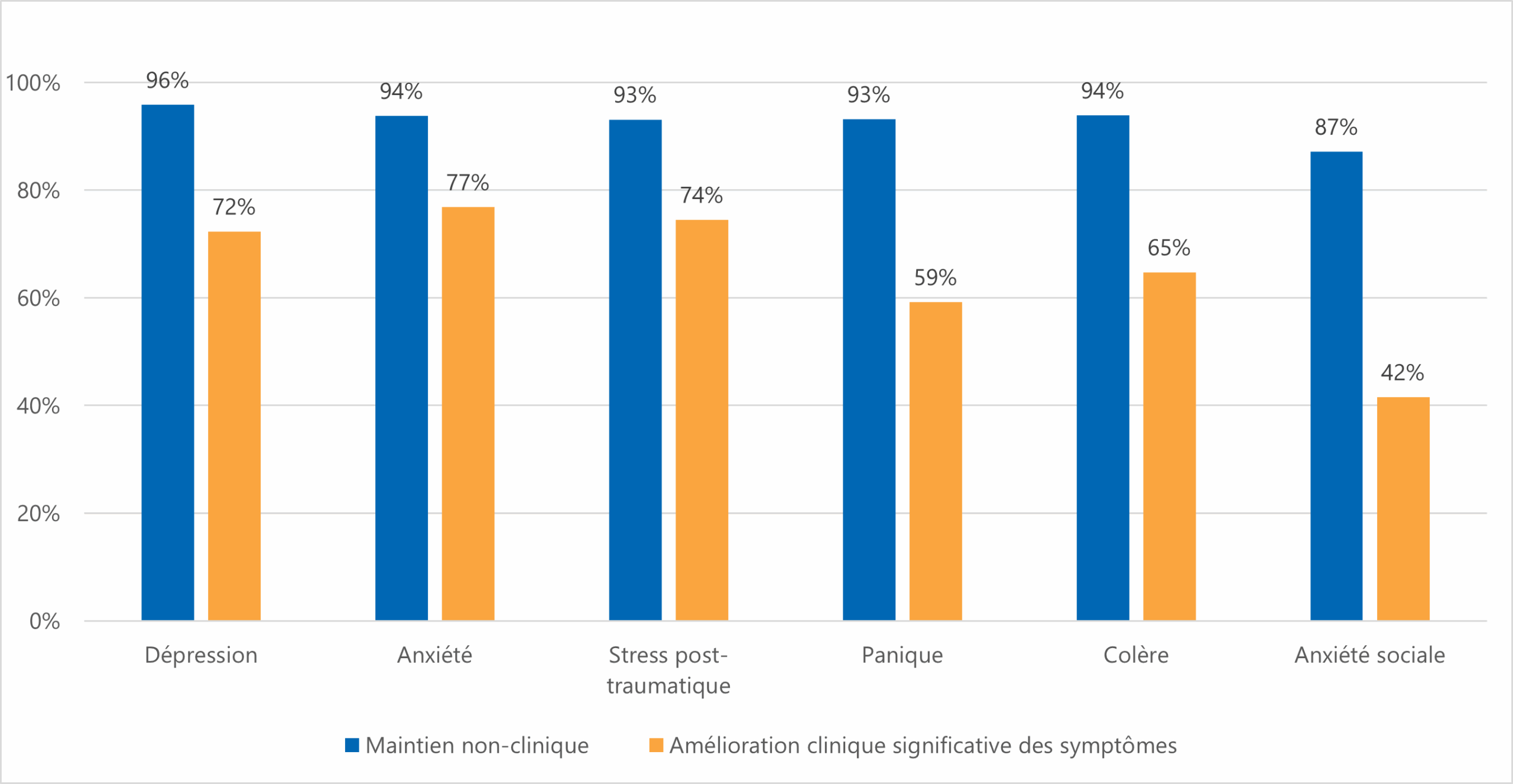 Résultats Cliniques: Démarches « Développement du bien-être » et « Gestion du TSPT » du PSP